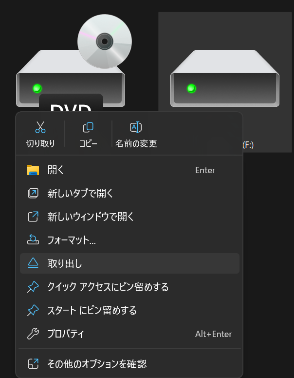 このような事にならないためにUSBメモリやUSB接続のドライブ(SSDやHDD)を取り外すときは「取り出し」もしくは「ハードウェアを安全に取り外してメディアを取り出す」を選択して外すようにしましょう。